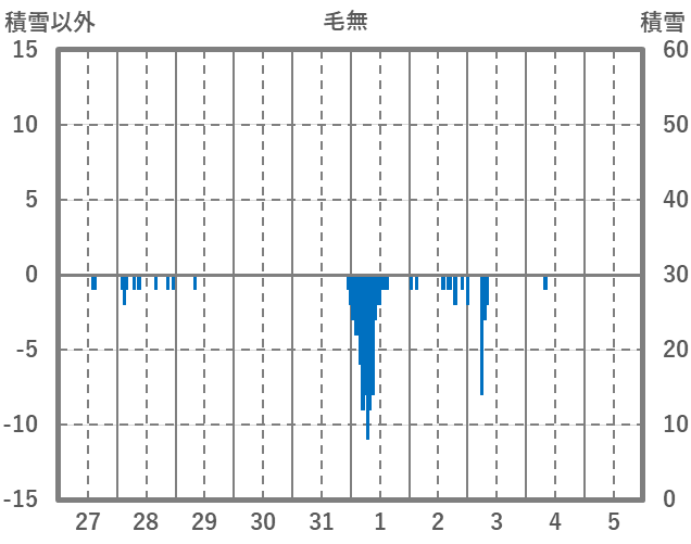 | 日 | 時 | 気温 | 降水 | 風向/風速 | 日照 | 積雪 | 降雪 |
