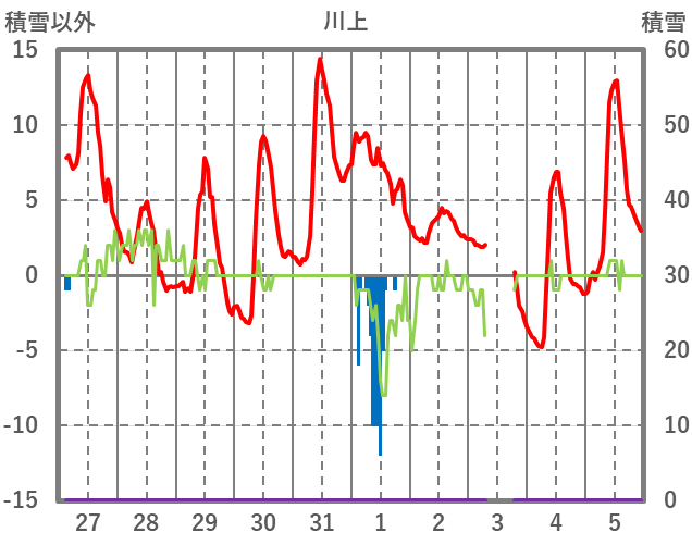 | 日 | 時 | 気温 | 降水 | 風向/風速 | 日照 | 積雪 | 降雪 |