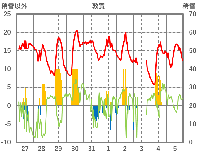 | 日 | 時 | 気温 | 降水 | 風向/風速 | 日照 | 積雪 | 降雪 |