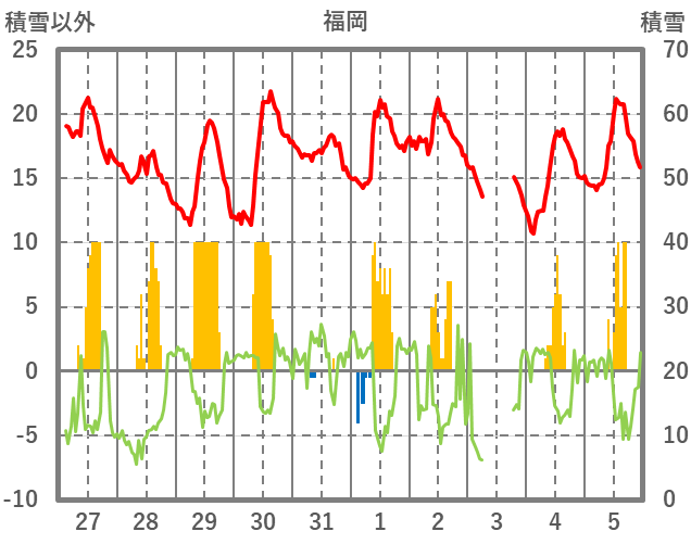 | 日 | 時 | 気温 | 降水 | 風向/風速 | 日照 | 積雪 | 降雪 |