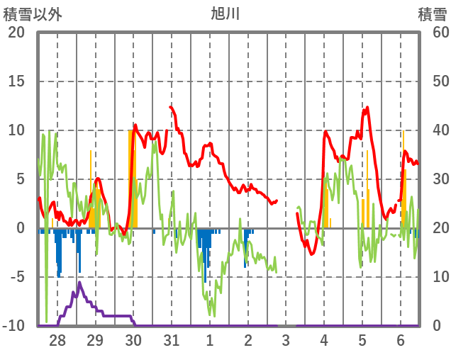 | 日 | 時 | 気温 | 降水 | 風向/風速 | 日照 | 積雪 | 降雪 |