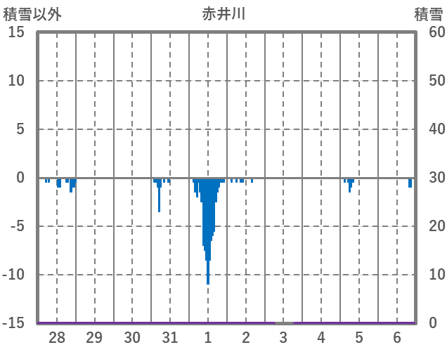 | 日 | 時 | 気温 | 降水 | 風向/風速 | 日照 | 積雪 | 降雪 |
