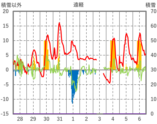 | 日 | 時 | 気温 | 降水 | 風向/風速 | 日照 | 積雪 | 降雪 |