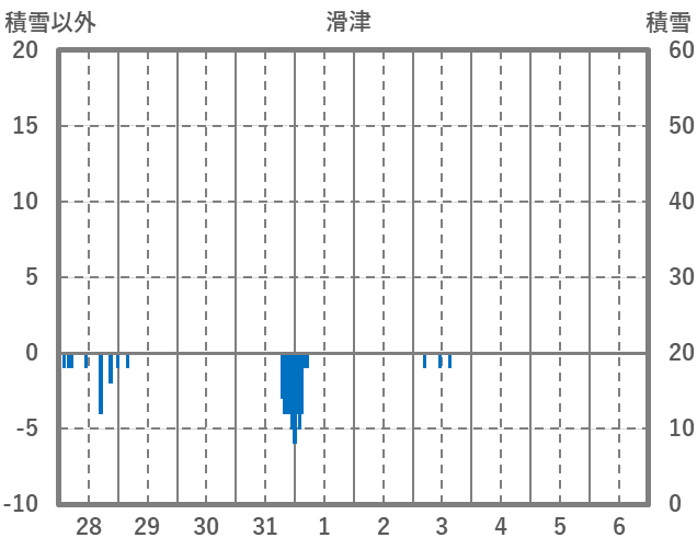 | 日 | 時 | 気温 | 降水 | 風向/風速 | 日照 | 積雪 | 降雪 |