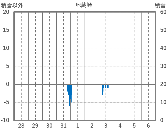 | 日 | 時 | 気温 | 降水 | 風向/風速 | 日照 | 積雪 | 降雪 |