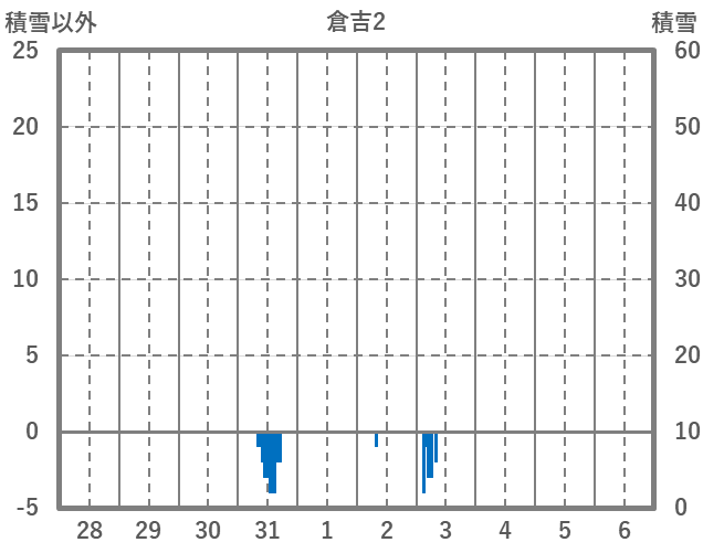 | 日 | 時 | 気温 | 降水 | 風向/風速 | 日照 | 積雪 | 降雪 |