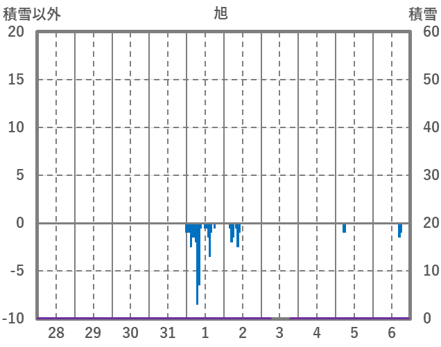 | 日 | 時 | 気温 | 降水 | 風向/風速 | 日照 | 積雪 | 降雪 |