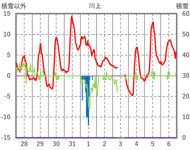 | 日 | 時 | 気温 | 降水 | 風向/風速 | 日照 | 積雪 | 降雪 |