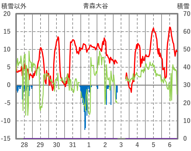 | 日 | 時 | 気温 | 降水 | 風向/風速 | 日照 | 積雪 | 降雪 |