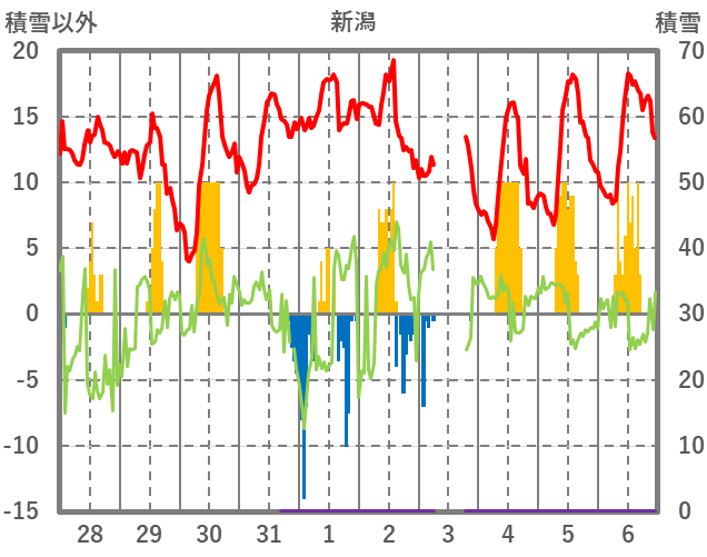 | 日 | 時 | 気温 | 降水 | 風向/風速 | 日照 | 積雪 | 降雪 |