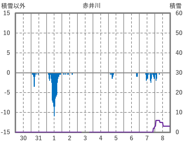 | 日 | 時 | 気温 | 降水 | 風向/風速 | 日照 | 積雪 | 降雪 |