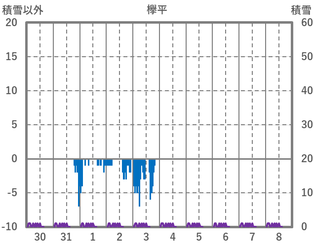 | 日 | 時 | 気温 | 降水 | 風向/風速 | 日照 | 積雪 | 降雪 |