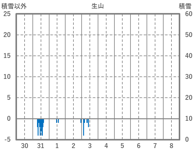 | 日 | 時 | 気温 | 降水 | 風向/風速 | 日照 | 積雪 | 降雪 |