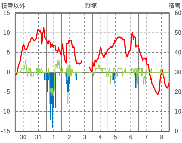 | 日 | 時 | 気温 | 降水 | 風向/風速 | 日照 | 積雪 | 降雪 |