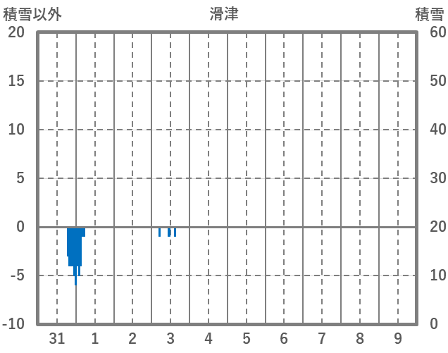 | 日 | 時 | 気温 | 降水 | 風向/風速 | 日照 | 積雪 | 降雪 |