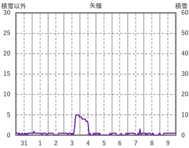 | 日 | 時 | 気温 | 降水 | 風向/風速 | 日照 | 積雪 | 降雪 |