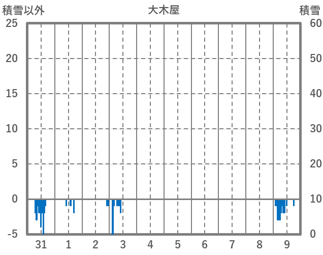 | 日 | 時 | 気温 | 降水 | 風向/風速 | 日照 | 積雪 | 降雪 |
