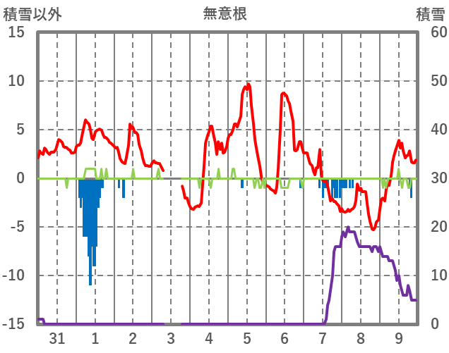 | 日 | 時 | 気温 | 降水 | 風向/風速 | 日照 | 積雪 | 降雪 |