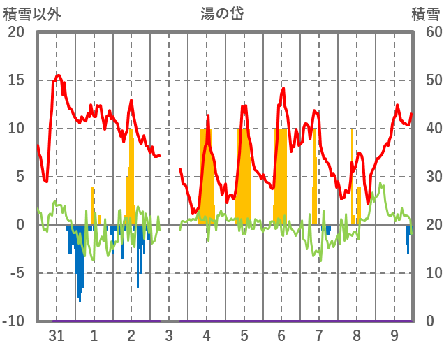 | 日 | 時 | 気温 | 降水 | 風向/風速 | 日照 | 積雪 | 降雪 |