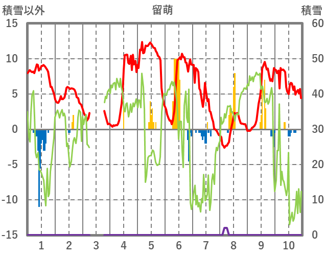 | 日 | 時 | 気温 | 降水 | 風向/風速 | 日照 | 積雪 | 降雪 |