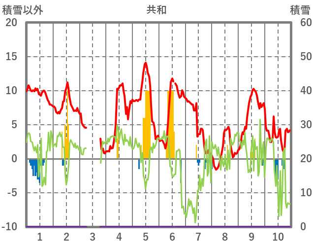 | 日 | 時 | 気温 | 降水 | 風向/風速 | 日照 | 積雪 | 降雪 |