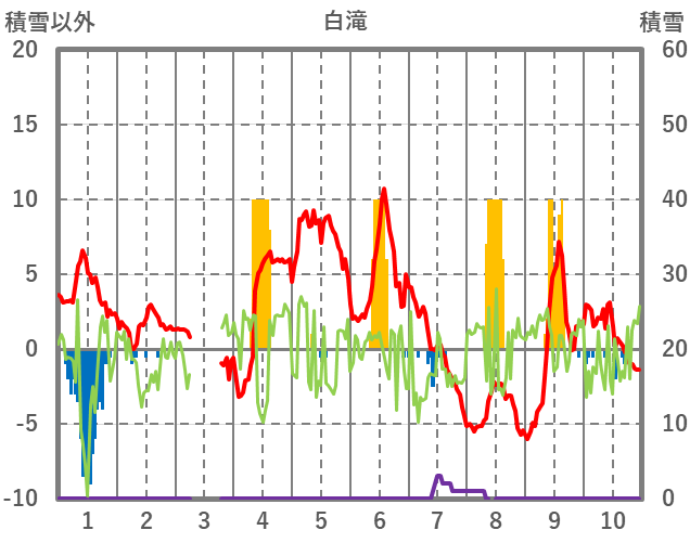 | 日 | 時 | 気温 | 降水 | 風向/風速 | 日照 | 積雪 | 降雪 |