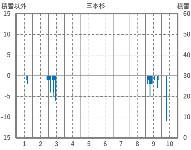 | 日 | 時 | 気温 | 降水 | 風向/風速 | 日照 | 積雪 | 降雪 |