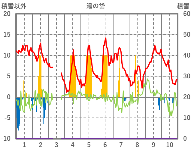 | 日 | 時 | 気温 | 降水 | 風向/風速 | 日照 | 積雪 | 降雪 |