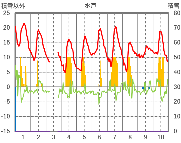 | 日 | 時 | 気温 | 降水 | 風向/風速 | 日照 | 積雪 | 降雪 |