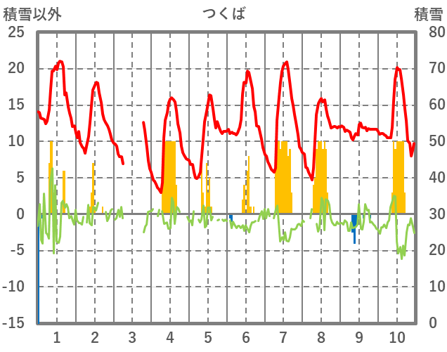 | 日 | 時 | 気温 | 降水 | 風向/風速 | 日照 | 積雪 | 降雪 |