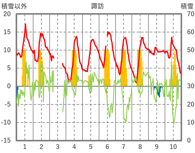 | 日 | 時 | 気温 | 降水 | 風向/風速 | 日照 | 積雪 | 降雪 |