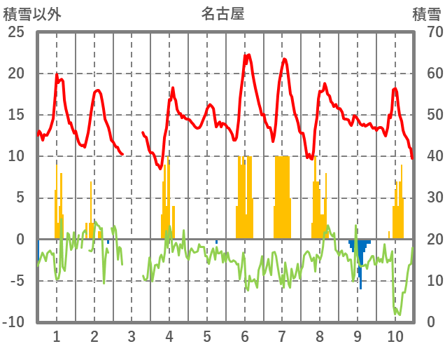 | 日 | 時 | 気温 | 降水 | 風向/風速 | 日照 | 積雪 | 降雪 |