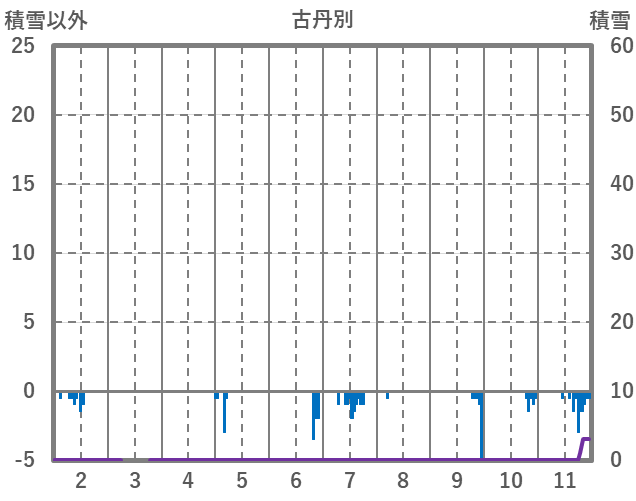 | 日 | 時 | 気温 | 降水 | 風向/風速 | 日照 | 積雪 | 降雪 |