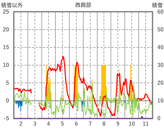 | 日 | 時 | 気温 | 降水 | 風向/風速 | 日照 | 積雪 | 降雪 |