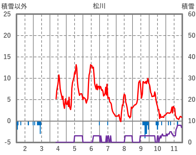 | 日 | 時 | 気温 | 降水 | 風向/風速 | 日照 | 積雪 | 降雪 |