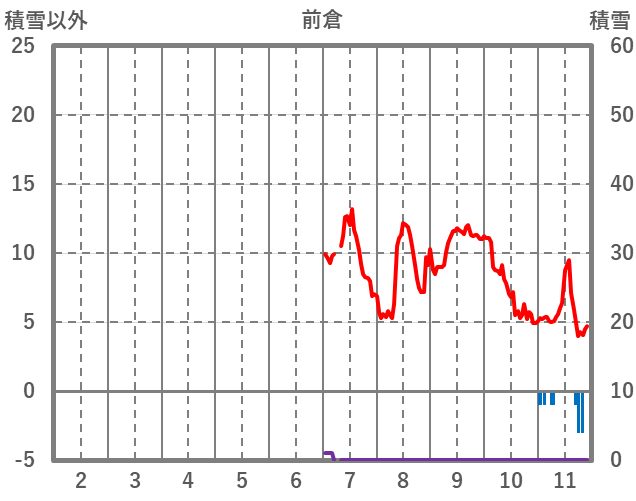 | 日 | 時 | 気温 | 降水 | 風向/風速 | 日照 | 積雪 | 降雪 |