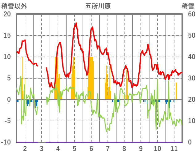 | 日 | 時 | 気温 | 降水 | 風向/風速 | 日照 | 積雪 | 降雪 |
