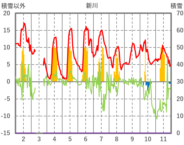 | 日 | 時 | 気温 | 降水 | 風向/風速 | 日照 | 積雪 | 降雪 |
