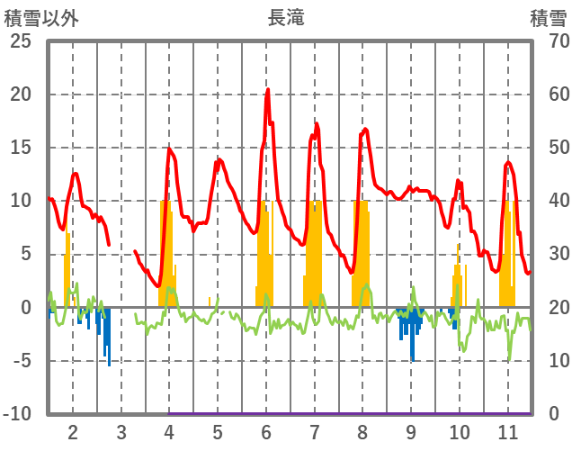 | 日 | 時 | 気温 | 降水 | 風向/風速 | 日照 | 積雪 | 降雪 |