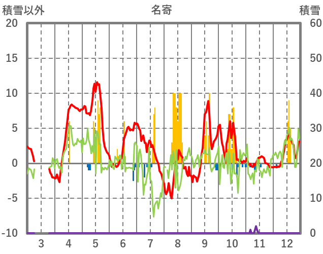 | 日 | 時 | 気温 | 降水 | 風向/風速 | 日照 | 積雪 | 降雪 |