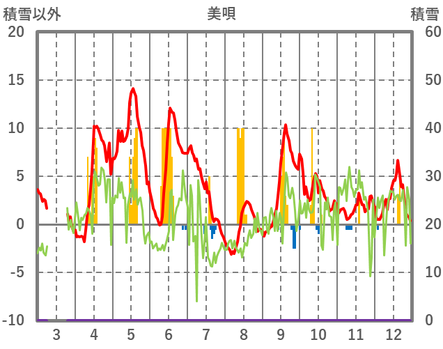 | 日 | 時 | 気温 | 降水 | 風向/風速 | 日照 | 積雪 | 降雪 |