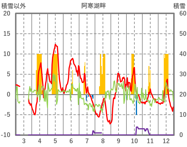| 日 | 時 | 気温 | 降水 | 風向/風速 | 日照 | 積雪 | 降雪 |