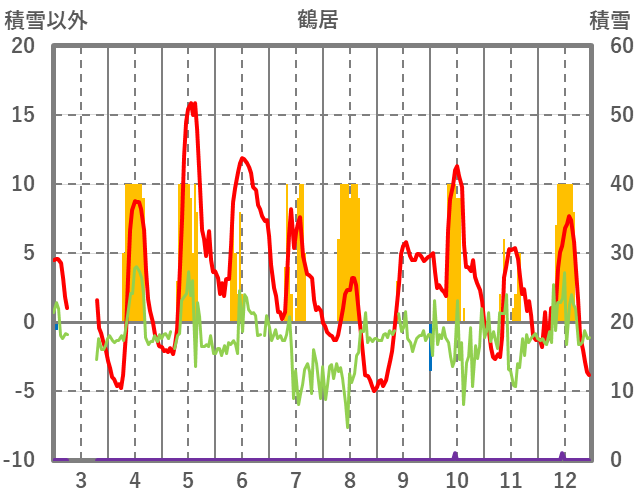 | 日 | 時 | 気温 | 降水 | 風向/風速 | 日照 | 積雪 | 降雪 |
