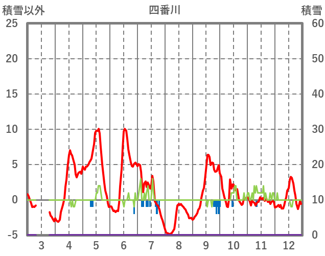 | 日 | 時 | 気温 | 降水 | 風向/風速 | 日照 | 積雪 | 降雪 |