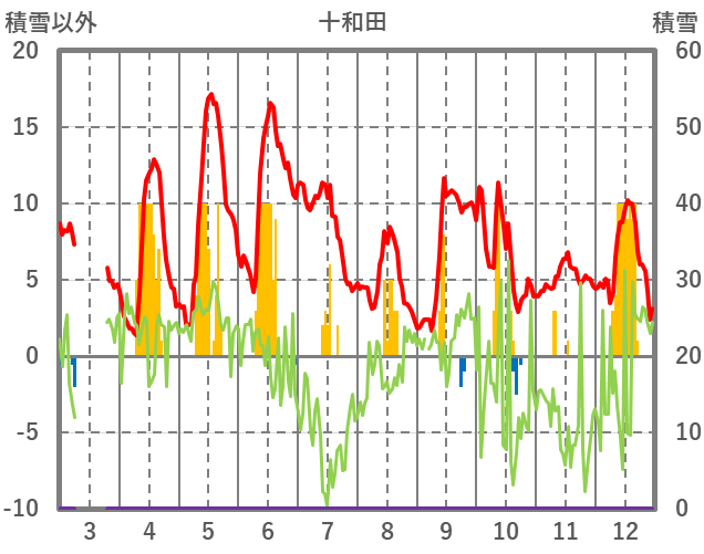 | 日 | 時 | 気温 | 降水 | 風向/風速 | 日照 | 積雪 | 降雪 |