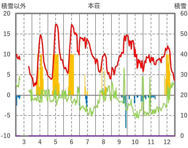| 日 | 時 | 気温 | 降水 | 風向/風速 | 日照 | 積雪 | 降雪 |