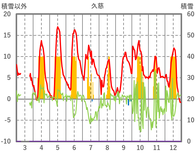 | 日 | 時 | 気温 | 降水 | 風向/風速 | 日照 | 積雪 | 降雪 |