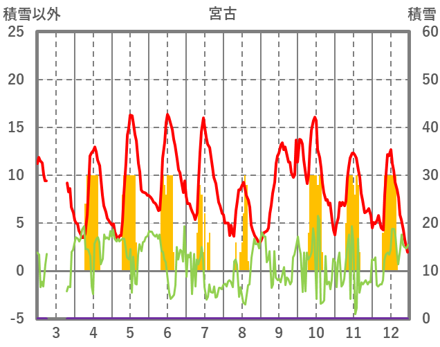 | 日 | 時 | 気温 | 降水 | 風向/風速 | 日照 | 積雪 | 降雪 |
