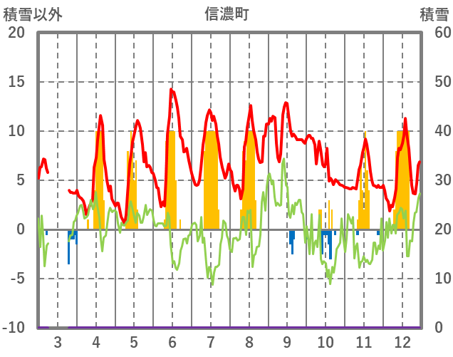 | 日 | 時 | 気温 | 降水 | 風向/風速 | 日照 | 積雪 | 降雪 |