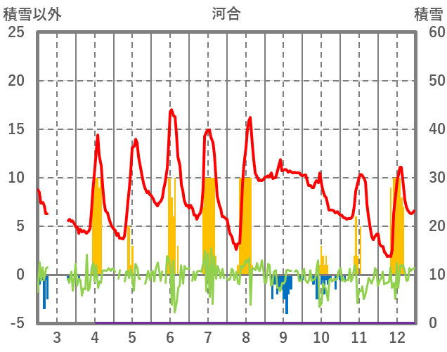 | 日 | 時 | 気温 | 降水 | 風向/風速 | 日照 | 積雪 | 降雪 |